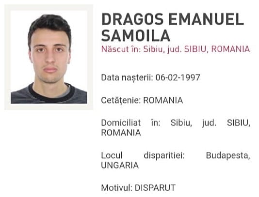 Un sibian de 22 de ani este căutat, după ce a dispărut în BudapestaUn tânăr sibian de 22 de ani a dispărut în urmă cu câteva zile, în Budapesta, iar familia nu mai reușește să intre în legătură cu el. Dragoș urma să vină în România, din Germania, dar s-ar fi oprit pentru -