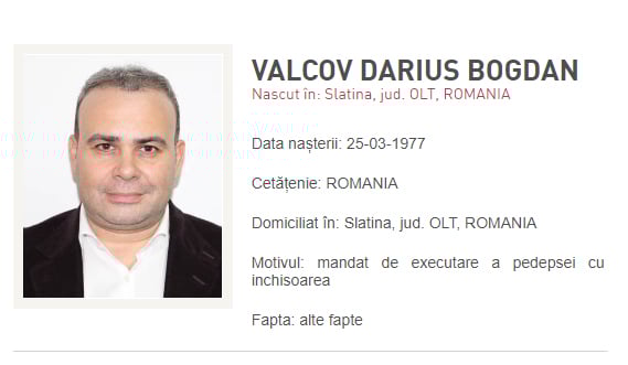 Darius Vâlcov, dat în urmărire generală. Are de executat o condamnare de 6 ani în „Dosarul Tablourilor”Darius Vâlcov a fost dat în urmărire generală de Poliţia Română, după ce nu a fost găsit pentru a fi încarcerat, el având de executat o condamnare de 6 ani de închisoare într-un dosar de trafic de influenţă şi spălare -