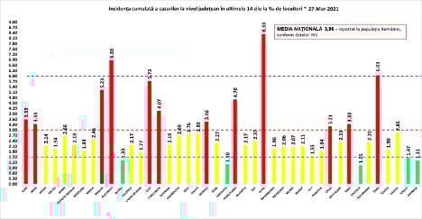 5.869 de cazuri noi, din peste 37.000 de testeAutoritățile de București anunță că în ultimele 24 de ore s-au înregistrat 5.869 de cazuri de coronavirus, din peste 37.000 de teste efectuate în toată țara. La Sibiu s-au consemnat 129 de cazuri noi. În total, până astăzi, 27 martie, -