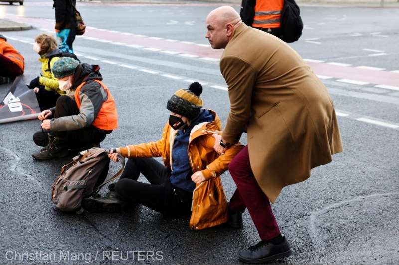 Protest în Germania: mai mulți activişti pentru climă s-au lipit cu o substanţă adezivă de asfaltul principalei autostrăzi din BerlinUnsprezece activişti pentru climă s-au lipit cu o substanţă adezivă de asfaltul principalei autostrăzi care trece prin Berlin şi au blocat traficul rutier la o oră de vârf în capitala Germaniei luni dimineaţă, în cadrul celui mai recent protest organizat -