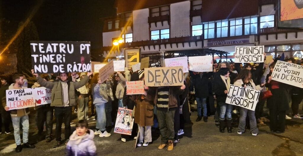 „Suntem copiii cărora li s-a promis că vor fi liberi!”. Câteva sute de tineri au protestat în SibiuPeste 250 de tineri s-au strâns, marți seara, în Piața Unirii din Sibiu, pentru a protesta împotriva a ceea ce ei văd în rezultatul primului tur al alegerilor prezidențiale: ascensiunea extremismului prin manipulare. Din unele mașini aflate în trecere, protestul -