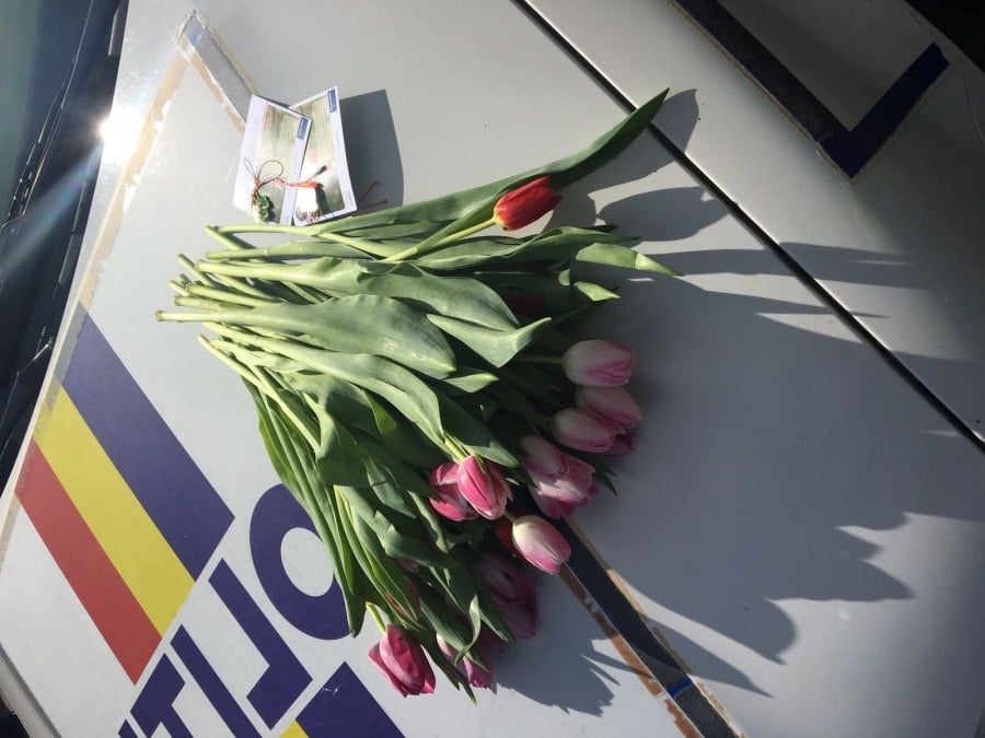 Polițiștii sibieni au oferit flori în trafic, dar și la Maternitate, de 8 martiePolițiștii din cadrul Inspectoratului de Poliție al Județului Sibiu și-au rupt câteva ore din munca de zi cu zi și ieri, 8 Martie, au oferit flori doamnelor și domnișoarelor. Aceștia s-au dedicat mămicilor și pruncilor aflați în Maternitatea Spitalului Clinic -
